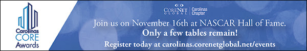 The second annual Carolinas CORE Awards, hosted by Carolinas COREnet Global will be held Nov. 16th in Charlotte, NC. The event will be held at the NASCAR Hall of Fame.