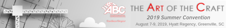 The Associated Builders and Contractors (ABC) of the Carolinas will be holding their 2019 Summer Convention in Greenville, SC, August 7-9, 2019. The convention will be held downtown at the Hyatt Regency and will feature educational sessions, networking events, and other activities. Featured speakers include Greenville Mayor Knox White and ABC National President and CEO Mike Bellaman.