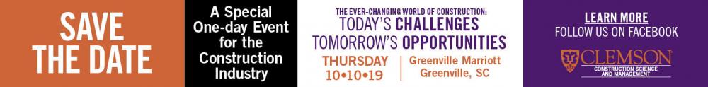 Interested in an economic update tailored for companies involved in residential and commercial construction in the Carolinas? Attend the 4th Annual Construction Industry Symposium offered by Clemson University’s Nieri Family Department of Construction Science and Management (CSM) — set for October 10, 2019, in Greenville, S.C.